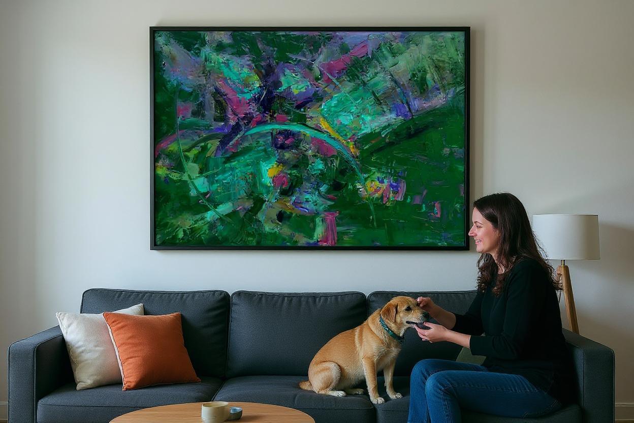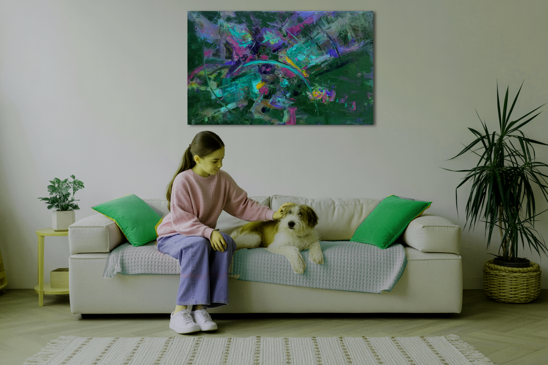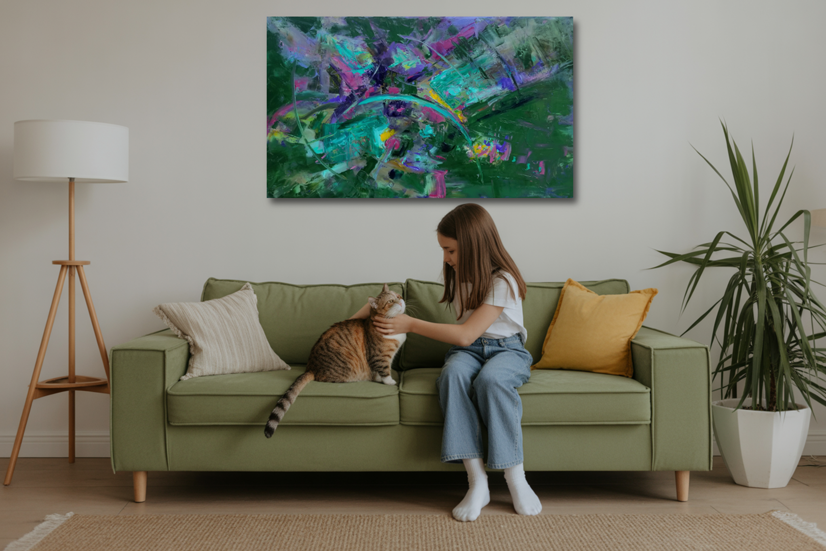 This composition blurs the boundary between the seen and the felt, evoking an elemental energy that seems to pulse beneath the surface—wild, untamed, and yet deeply alive. The wet-on-wet technique breathes immediacy and fluidity into each stroke, allowing pigment to mingle in spontaneous dialogue, as if the canvas itself were a living organism caught in a transient, sublime moment of transformation. The result is an abstract vision alive with organic pulse, where color becomes both force and feeling, a chromatic dance that unfolds with mysterious vitality.