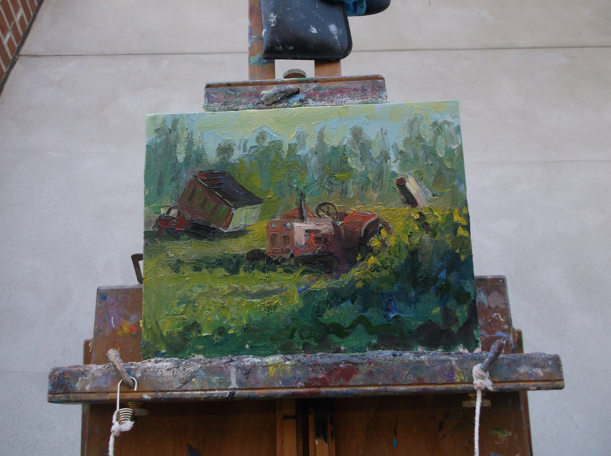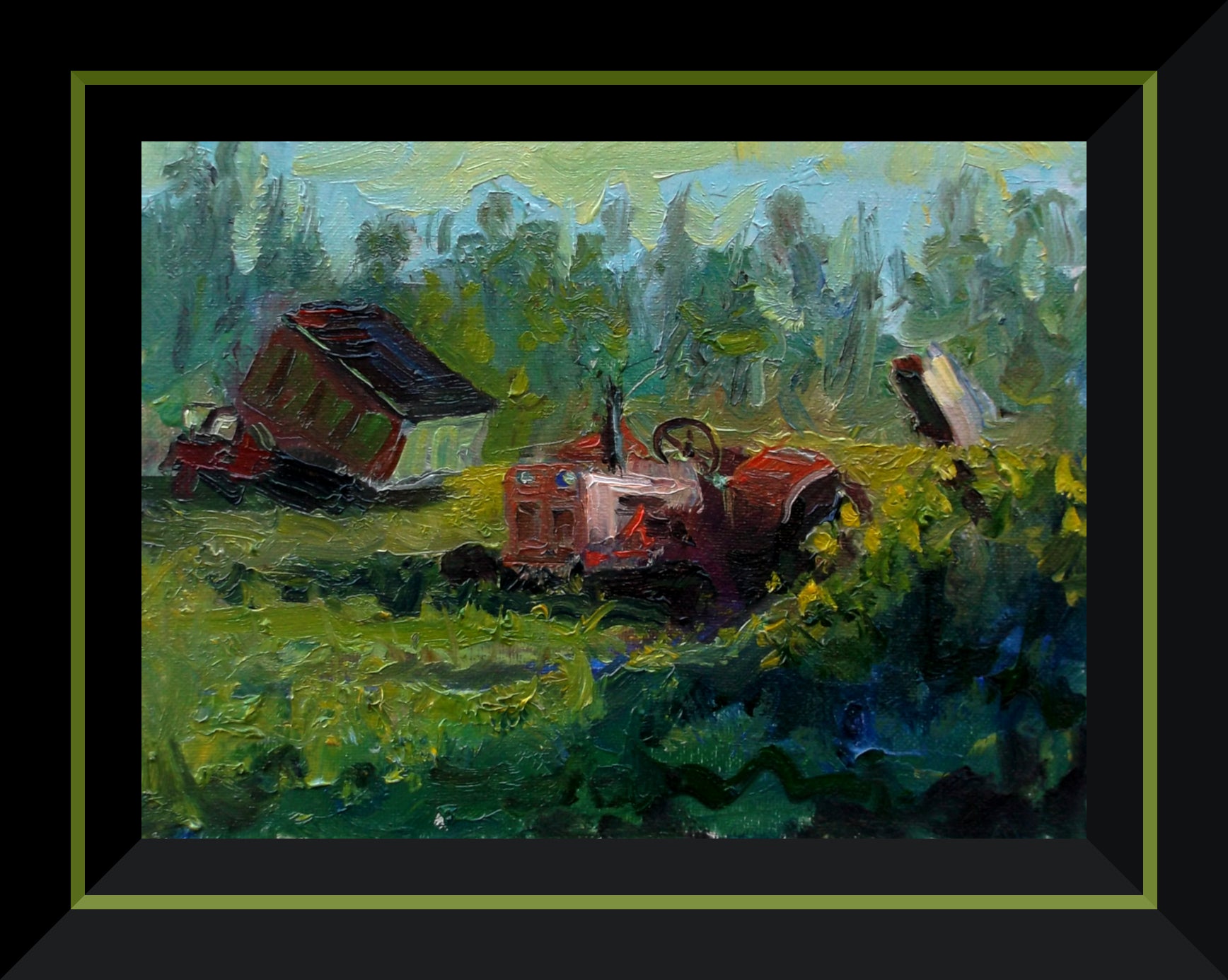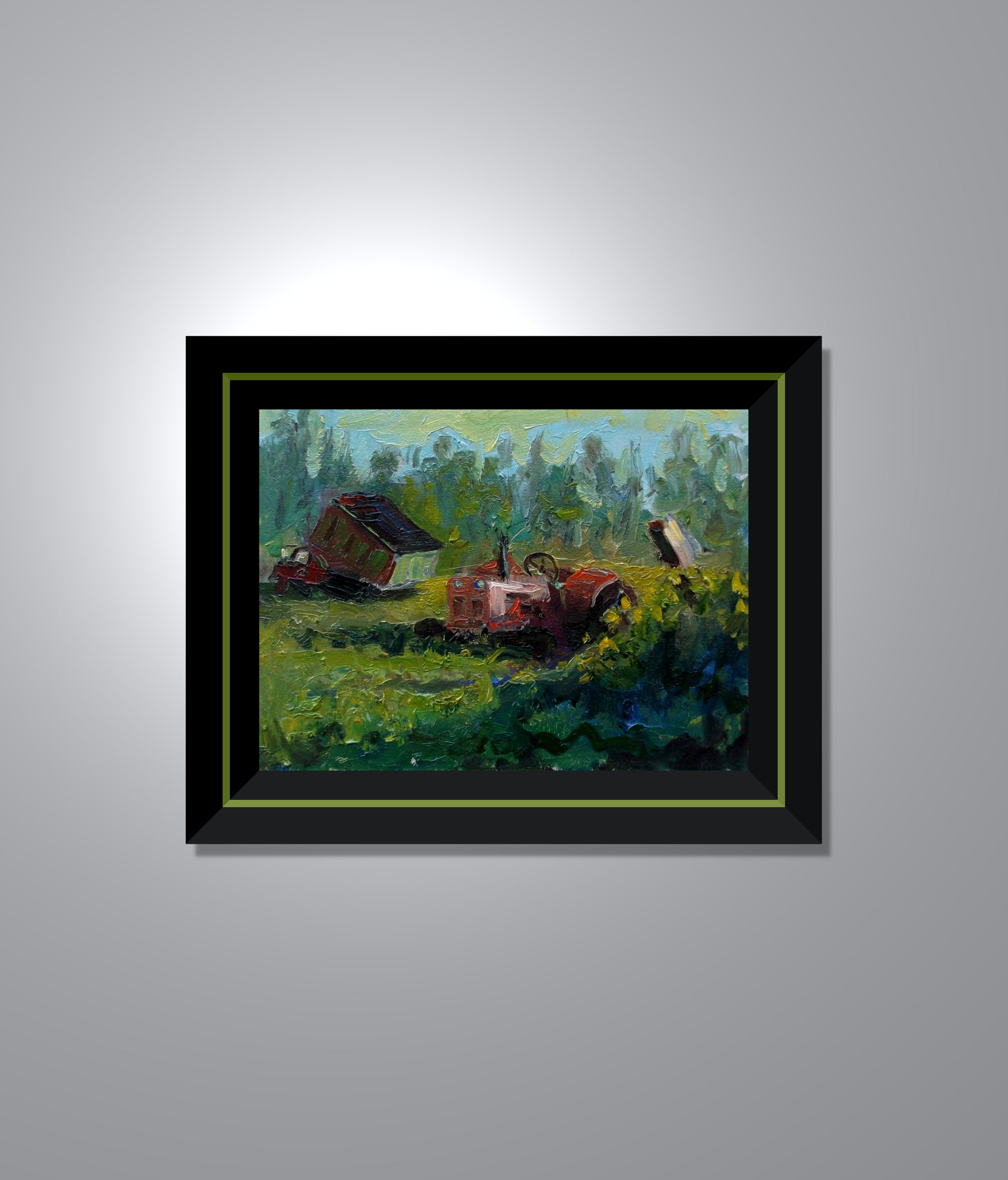 #oilpainting #ruralart #impressionism #pastoralscene #texturedbrushwork #natureandmachine #rustandroots #pleinairpainting #vibrantcolors #contemporaryart #farmart #landscapepainting #artwithtexture